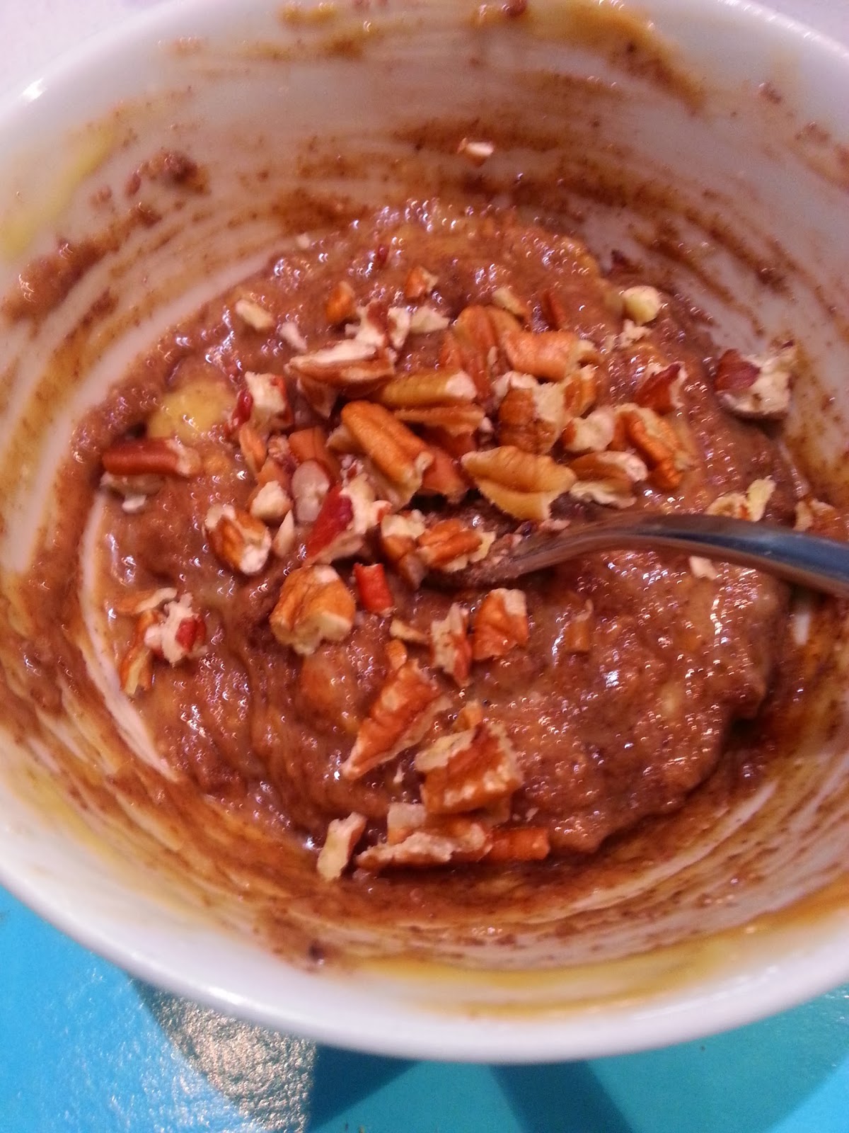 Lastly gently stir in the mashed banana and nuts.